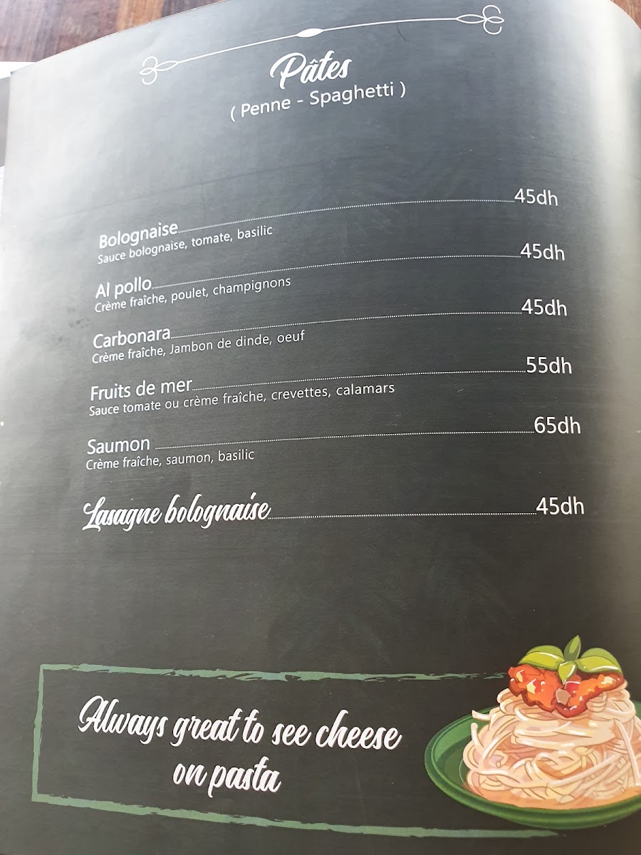Luz du Sud café Menu